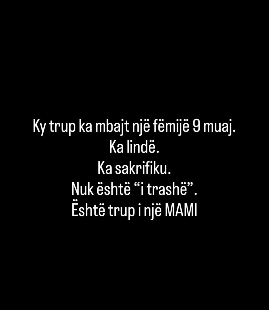 “Ky trup ka mbajt një fëmijë 9 muaj. Ka lind, ka sakrifiku. Nuk është i “trashë”, është trupi i një Mami”, ka shkruar ajo në përgjigjen e saj.