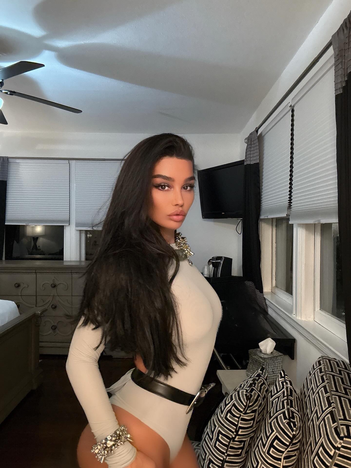 Në imazhe, ajo shfaqet e veshur me një kostum të ngushtë dhe çizme të gjata, duke nxjerrë në pah linjat e saj perfekte.