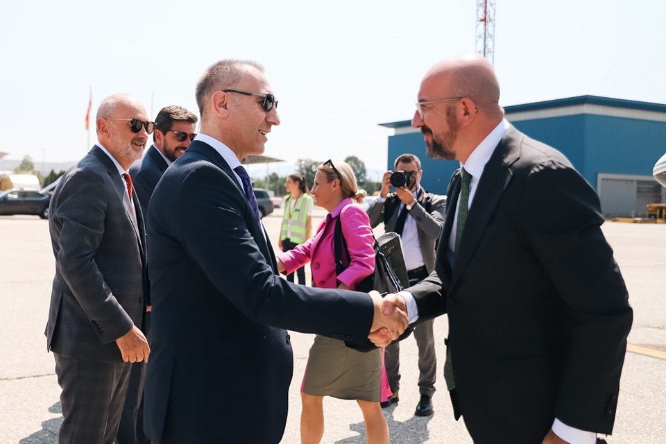 Në Aeroportin Ndërkombëtar të Shkupit i urova mirëseardhje në vendin tonë presidentit të Këshillit të Europës, z. Charles Michel.