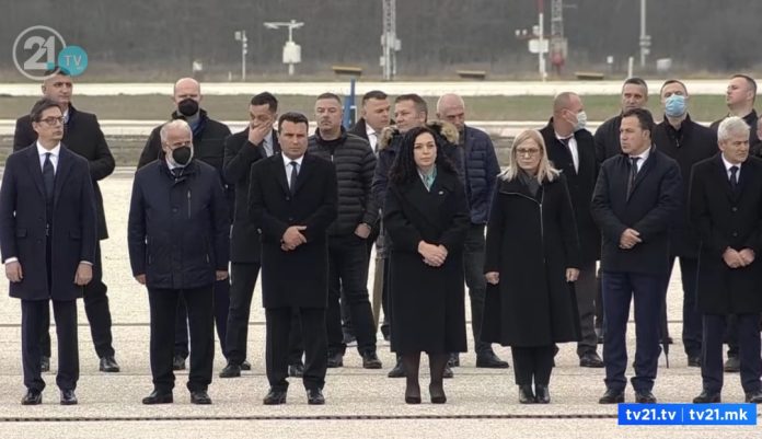 Në ceremoninë e pranimit të kufomave të viktimave të aksidentit tragjik në Bullgari, në Aeroportin Ndërkombëtar të Shkupit, të pranishëm janë edhe përfaqësues të lartë të Kosovës dhe Shqipërisë.