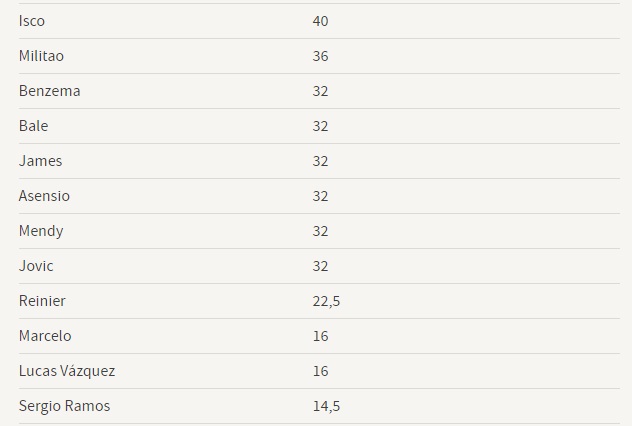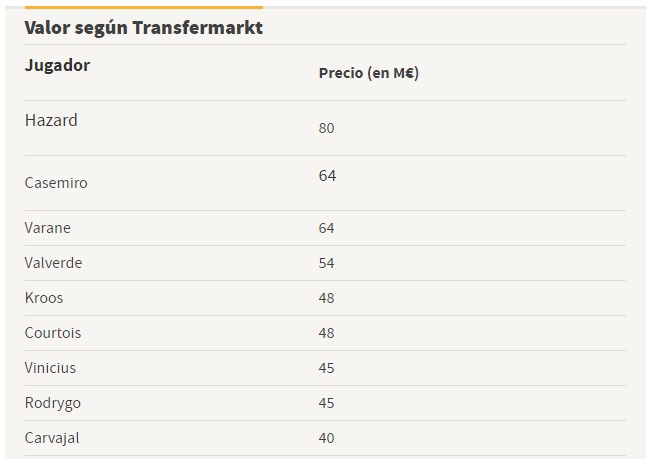 Më poshtë keni vlerën e futbollistëve të Realit.
