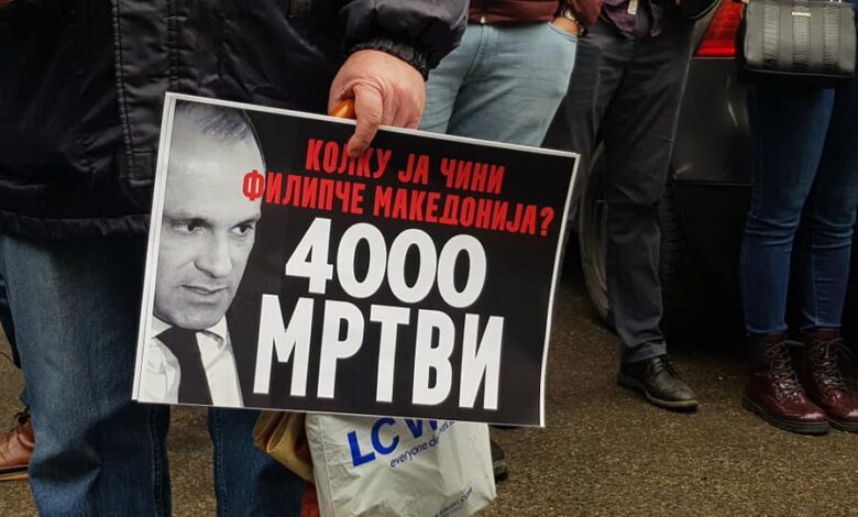 VMRO-DPMNE-ja opozitare mëngjesin e sotëm ka protestuar para Ministrisë së Shëndetësisë për shkak të menaxhimit të pandemisë, transmeton Alsat. Nga kjo pari akuzojnë ekzekutivin për keq-menaxhim të situatës shëndetësore dhe kërkojnë dorëheqjen e ministrit të Shëndetësisë, Venko Filipçe.