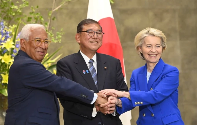 Ishiba ka deklaruar para gazetarëve se blloku evropian e Japonia do të angazhohen maksimalisht për të ndërtuar dhe mirëmbajtur një rend ekonomik të bazuar në rregulla, i cili është njëkohësisht i lirë dhe i drejtë.