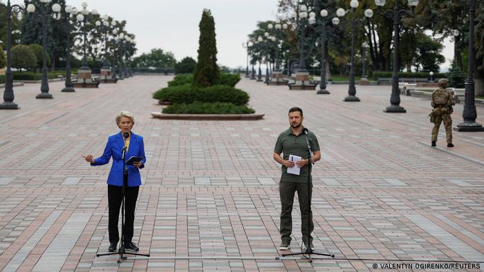 “Duhet të them, se procesi i antarësimit është në rrugë të mbarë”, tha presidentja e Komisionit të BE-së, Ursula von der Leyen në Kiev (15.09) në një konferencë të përbashkët shtypi me presidentin ukrainas Volodymyr Zhelenskyj në Kiev. “Eshtë impresionuese të shohësh, se me çfarë shpejtësie, vendosmërie dhe saktësie po avanconi ju.” Ukraina mund të mbështetet tek miqtë europianë në krah të saj.