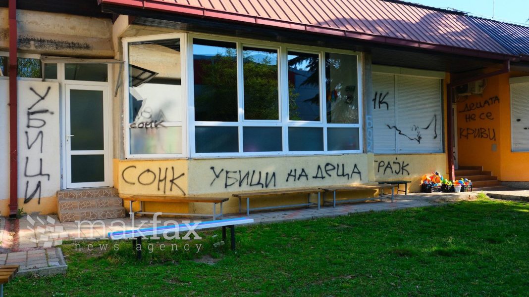 “Vrasës”, “fashistë”, “SASHK-u vrasës i fëmijëve” janë vetëm disa nga mbishkrimet që janë shkruar gjatë natës në muret e çerdhes “Rosica” në Gjorçe Petrov.