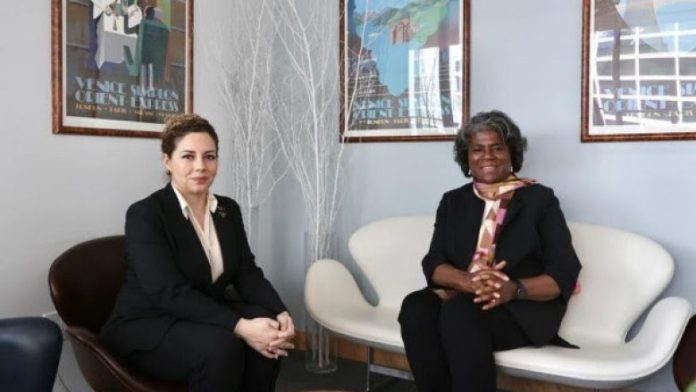 Ministrja e Jashtme të Shqipërisë, Olta Xhaçka gjatë vizitës në Shtetet e Bashkuara të Amerikës, ka takuar ambasadoren e SHBA-ve në OKB, Linda Thomas-Greenfield.
