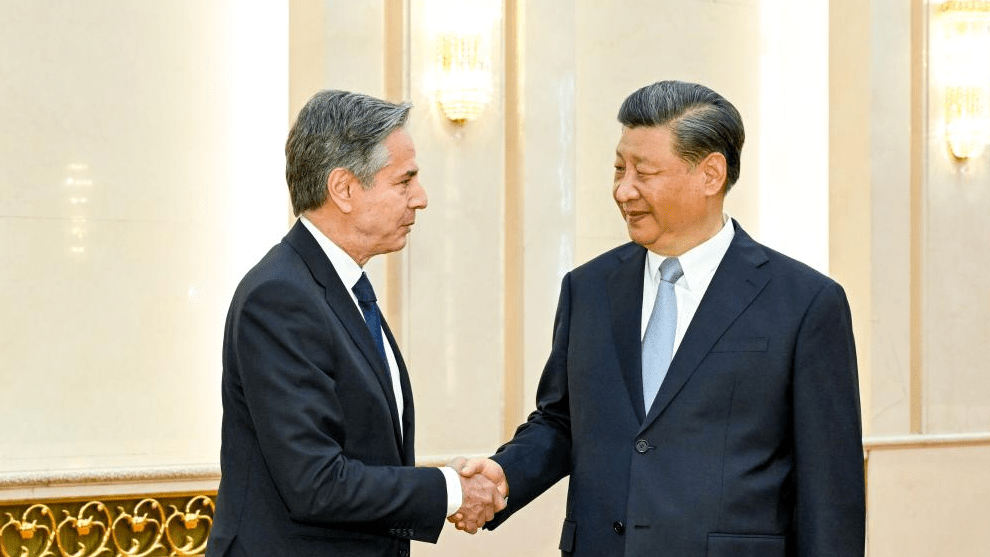 Sekretari i Shtetit i ShBA-së Antony Blinken, nga ana e tij, i përcolli presidentit Xi Jinping përshëndetjet e presidentit Joe Biden. Ai tha që presidenti Biden beson se ShBA-ja e Kina kanë përgjegjësinë dhe detyrimin për trajtimin si duhet të marrëdhënieve dypalëshe, çka përputhet me interesat e ShBA-së e të Kinës, dhe madje të mbarë botës. Pala amerikane është e përkushtuar për kthimin në agjendën e përcaktuar në takimin ndërmjet dy udhëheqësve në ishullin Bali të Indonezisë. ShBA-ja respekton premtimin e bërë nga presidenti Biden, d.m.th. nuk kërkon “Luftë të Ftohtë të re”, ndryshimin e sistemit të Kinës dhe kundërvënien ndaj Kinës ndërmjet forcimit të aleancave, nuk përkrah “pavarësinë e Tajvanit” dhe nuk synon konflikt me Kinën. Po ashtu, pala amerikane shpreson të zhvillojë kontaktet e nivelit të lartë me Kinën, të ruajë shkëmbimet e lirshme, të kontrollojë mosmarrëveshjet në mënyrë të përgjegjshme dhe të synojë dialogun, shkëmbimet e bashkëpunimin.