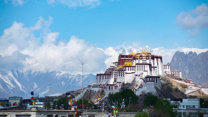 Në kryeqytetin rajonal Lhasa, banorë nga tona të ndryshme të veshur me kostume festive, u mblodhën në sheshin e Pallatit Potala, për ceremoninë kombëtare të ngritjes së flamurit, për këtë rast të veçantë.