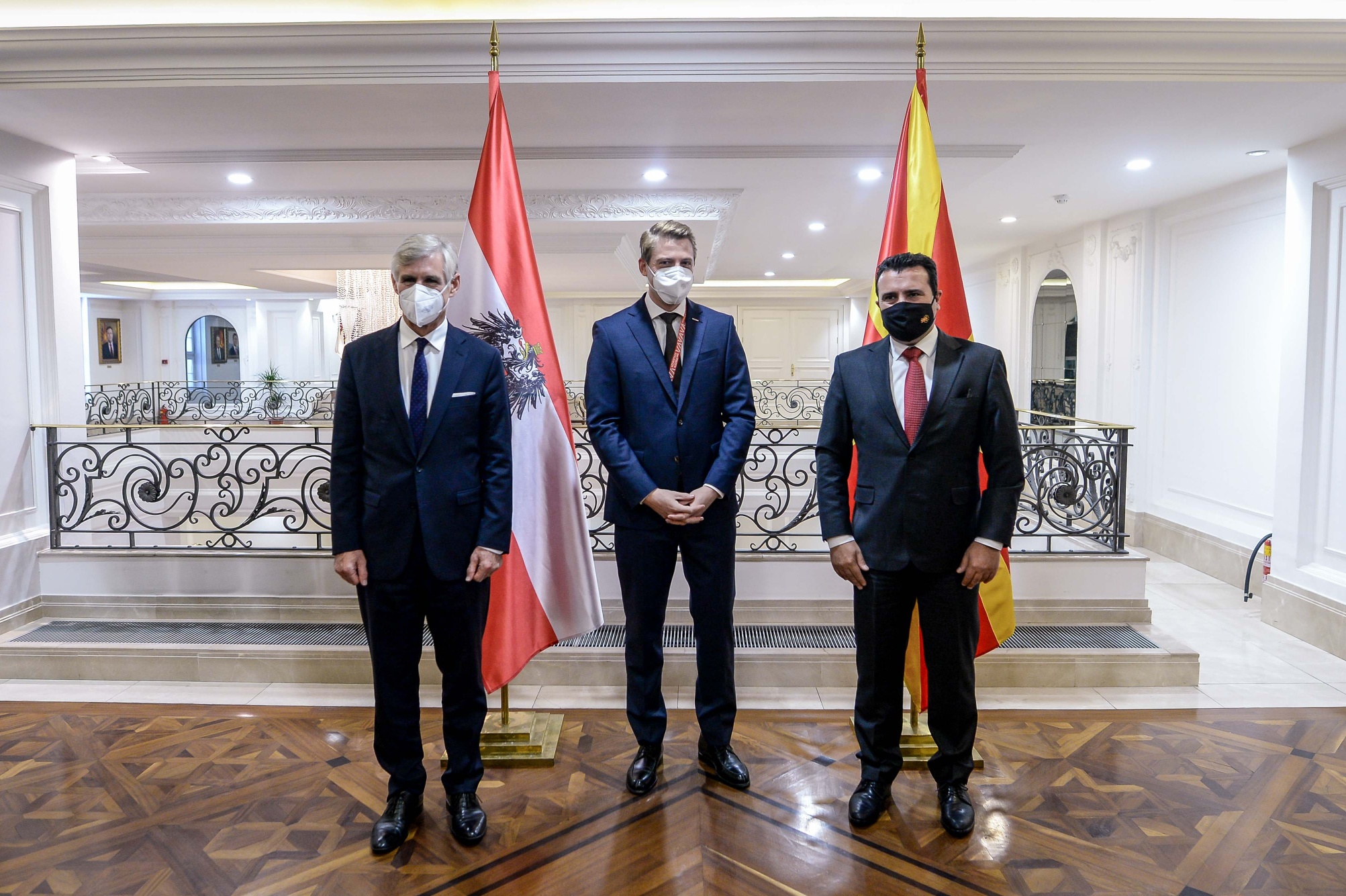 Në takim, siç kumtojnë nga shërbimi për media i Qeverisë, “është theksuar mbështetja e fortë e Republikës së Austrisë për vazhdimin e procesit të zgjerimit të BE-së me vendet nga Ballkani Perëndimor dhe konkretisht për fillimin e negociatave të BE-së me Republikën e Maqedonisë së Veriut, në dhjetor të këtij viti”.