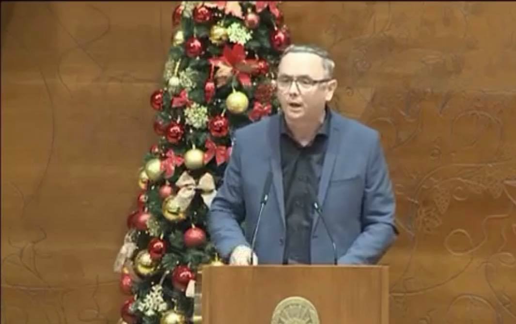 TË NDAHET BUXHET EDHE PËR INSPEKTORATIN E PËRDORIMIT TË GJUHËVE, me qëllim që, për mos perdorimin e dygjuhësisë të dënohet kryeministri, ministrat si dhe drejtoresha fashiste e Fondit Pensional. (Pjesë nga fjalimi i deputetit Skender Rexhepi- Zejdi)