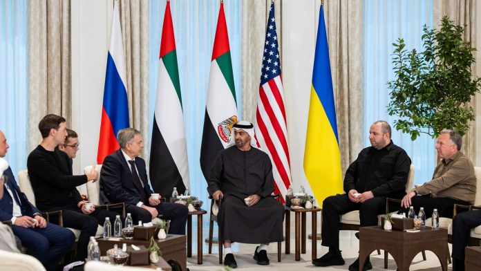 Presidenti ukrainas, Volodymyr Zelenskyy, deklaroi se bisedimet trepalëshe në Abu Dhabi mes Ukrainës, SHBA-së dhe Rusisë do të përqendrohen kryesisht në të ardhmen e rajonit lindor të Donbasit, ndërsa përpjekjet vazhdojnë për t’i dhënë fund pushtimit të Rusisë që tashmë zgjat gati katër vjet.