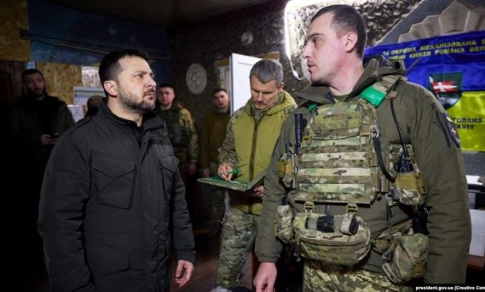 Zelensky e vizitoi vijën e frontit në qytetin verilindor, Kupianks, ku u takua me liderët e brigadës.