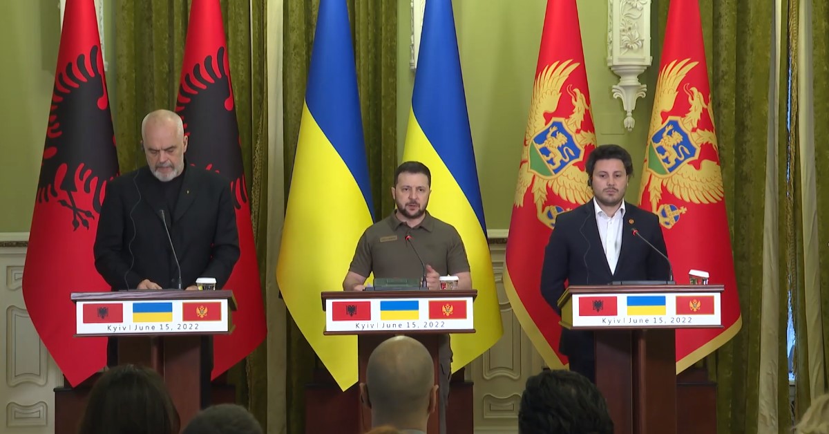 Pas vizitës në Kiev, kryeministri i vendit Edi Rama dhe kreu i qeverisë së Malit të Zi Dritan Abazoviç janë takuar me presidentin ukrainas Volodymyr Zelensky dhe më pas të 3 liderët kanë dhënë një konferencë të përbashkët për mediat.