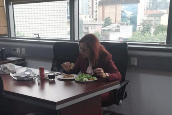 Zëvëndëskryeministrja që vije nga komuniteti boshnjak në Kosovë është parë sot duke u ushqyer në zyre me një ushqim të lirë dhe komod.