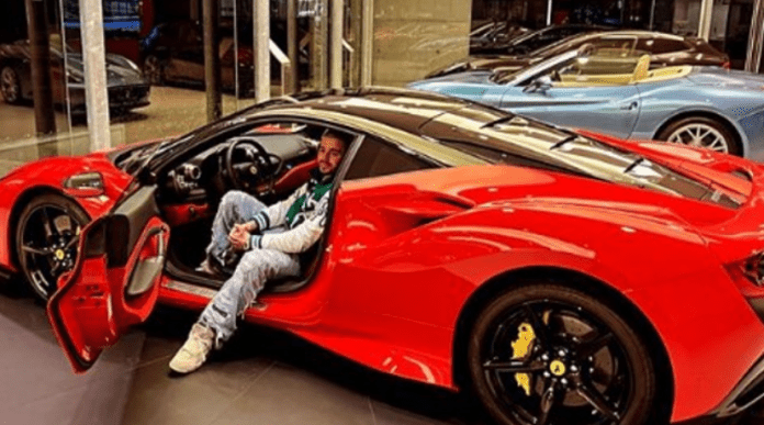 Përmes InstaStory 23 vjeçari na prezantoi veturën e tipit Ferrari ngjyrë të kuqe.
