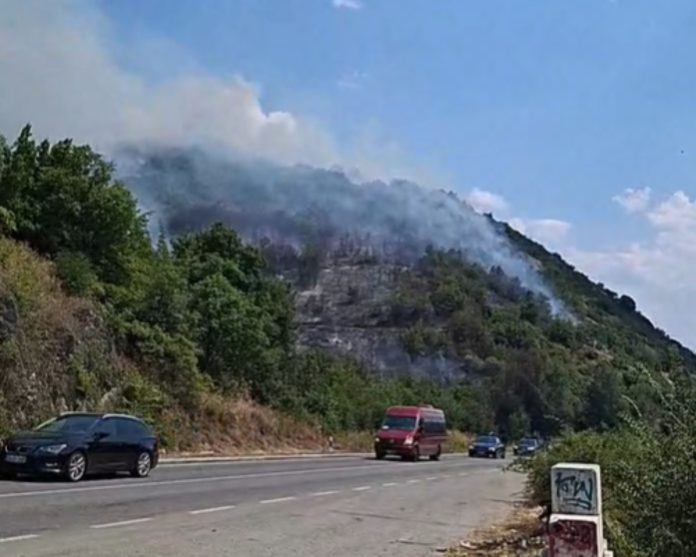 Në këto orë të mesditës është paraqitur zjarr në rrugën drejt pikës kufitare Bllacë, njofton Portalb.mk.
