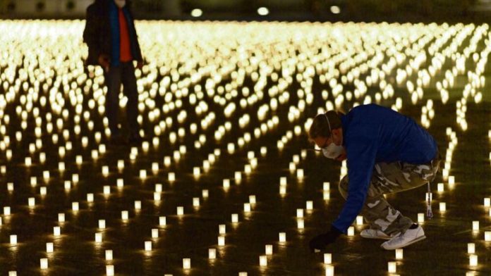 Para ndërtesës së Parlamentit federal në Bern të Zvicrës, janë ndezur 11.288 qirinj – nga një për çdo viktimë të coronavirusit gjatë pandemisë që shpërtheu pothuajse dy vite më parë.